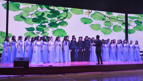 丰富多彩的节目幽默诙谐,或深情款款,如Season Echo艺术团中西合璧,用横笛、二胡、小提琴等乐器演绎热门游戏配乐《中国园林》,音乐与画面配合紧密而流畅,赢得了满堂喝彩;相声协会《军训特供》以拍广告为主线,表演诙谐,笑声连连;新疆舞《花儿》罗裙摇曳,细辫飞扬,掌声阵阵;书法协会领衔的《彝族舞曲》再现了古时文人乐工之风雅,别具一格;演讲协会《将进酒》挥洒浪漫诗情;《茶底世界》唱出了少年的理想与热诚,街舞《Gashina》以标志性的编舞带动了现场观众,使气氛达到高潮。最后,19级新生辅导员、军训政工干部代表上台演唱《我和我的祖国》,悠扬的旋律直抵人心,引发全场齐唱,晚会至此落下帷幕。