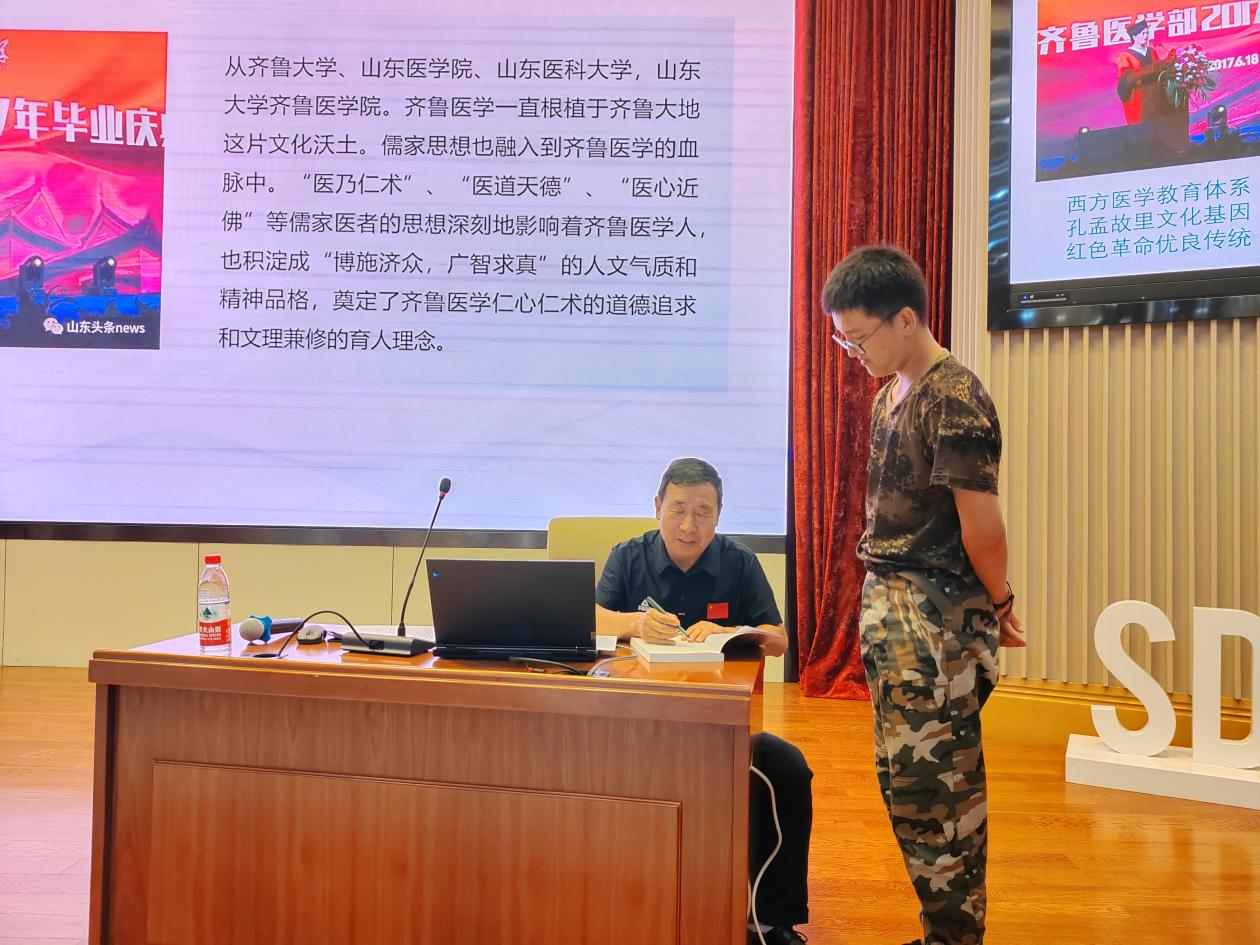 在“齐鲁医学那些年”篇章,他与同学们共同回忆齐鲁医学发展史上一些大的事件,一些重要的年份和节点,让同学们对齐鲁医学史的脉络有一个清晰的了解和掌握;“齐鲁医学那些人”篇章,追忆那些为齐鲁医学发展作出贡献的奠基人、那些大师级的人物,以及部分杰出校友的代表;“齐鲁医学那些事”篇章,讲述百年齐鲁医学发展史上几个难忘的故事。