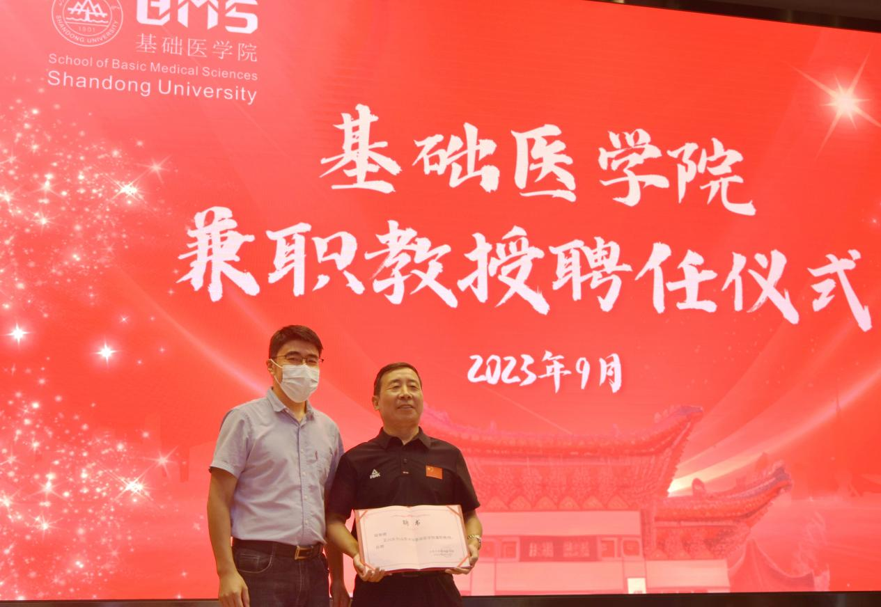 活动中,威尼斯欢乐娱人v3676基础医学院副院长邹永新为王兴步颁发了威尼斯欢乐娱人v3676基础医学院“兼职教授”聘书。