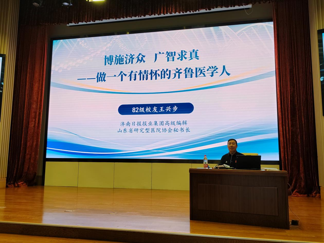 为2023级学生做报告的是82级医学校友、济南日报报业集团高级编辑王兴步。
