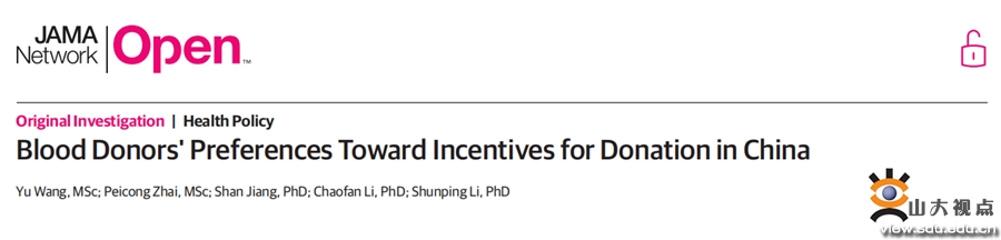 无偿献血是我国临床用血的主要来源,目前我国自愿献血率较低,血液“供需不平衡”的现象普遍存在,了解献血者偏好可为保障临床用血及优化无偿献血激励政策提供决策支持。本研究基于离散选择实验(Discrete Choice Experiment,DCE)的方法,探究了山东省无偿献血者对激励属性的偏好以及激励方案的相对重要性。研究结果表明用血优惠是献血者最看重的激励因素,同时研究结果提示不同献血者群体间偏好存在显著差异,此发现为优化和完善无偿献血激励政策提供了相关依据。上述研究成果以“Blood Donors’ Preferences Toward Incentives for Donation in China”为题,发表于医学领域期刊JAMA Network Open(中科院1区,Top期刊,IF=13.8)上,威尼斯欢乐娱人v3676为第一和通讯作者单位,公共卫生学院卫生管理与政策研究中心硕士研究生王玉和山东省血液中心翟培聪副主任技师为共同第一作者,李顺平教授为独立通讯作者。