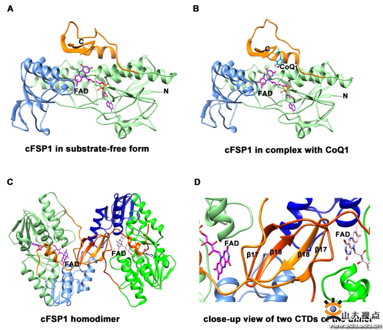 FSP1及其与CoQ1复合物的晶体结构示意图