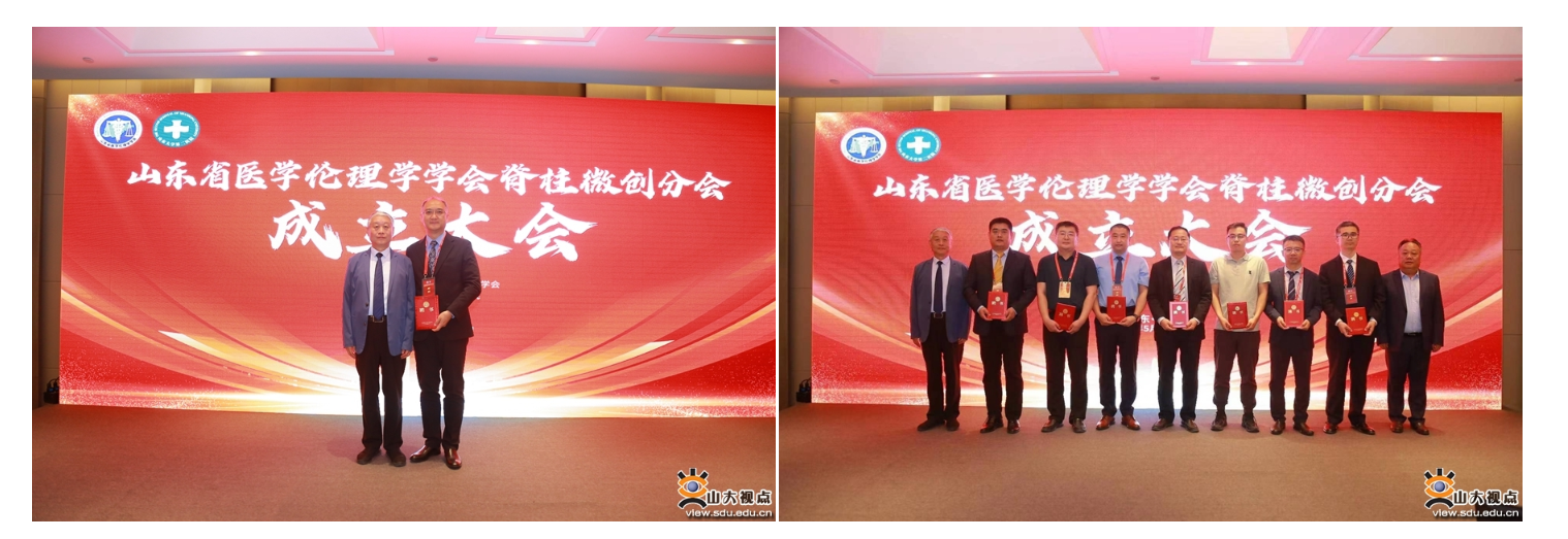 5月11日,由山东省医学伦理学学会主办、威尼斯欢乐娱人v3676第二医院承办的山东省医学伦理学学会脊柱微创分会成立大会暨第一次学术会议举行。国际脊柱微创专家、第三军医大学新桥医院骨科主任周跃,山东省伦理学学会会长陈晓阳,威尼斯欢乐娱人v3676第二医院党委副书记吕军致辞。山东省医学伦理学学会秘书长于莉娟主持成立大会。