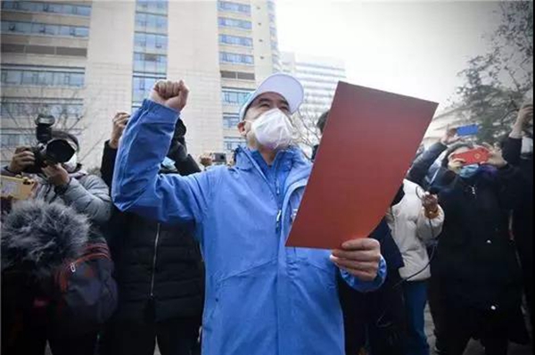 3月31日,山大二院援湖北国家医疗队返回济南,武汉市政府和当地人民群众为欢送英雄们,自发地走上街头相送,给予了医疗队极高的礼遇。马承恩和医疗队员们被武汉人民的深情厚谊深深感动。“今天快递人员给我们免费送行李,每个箱子上都写上‘英雄一路顺风’的字样,几个小伙子替我们搬运这么多箱子毫无怨言,让我们感动得流泪。”说到这里,马承恩的语气哽咽了。