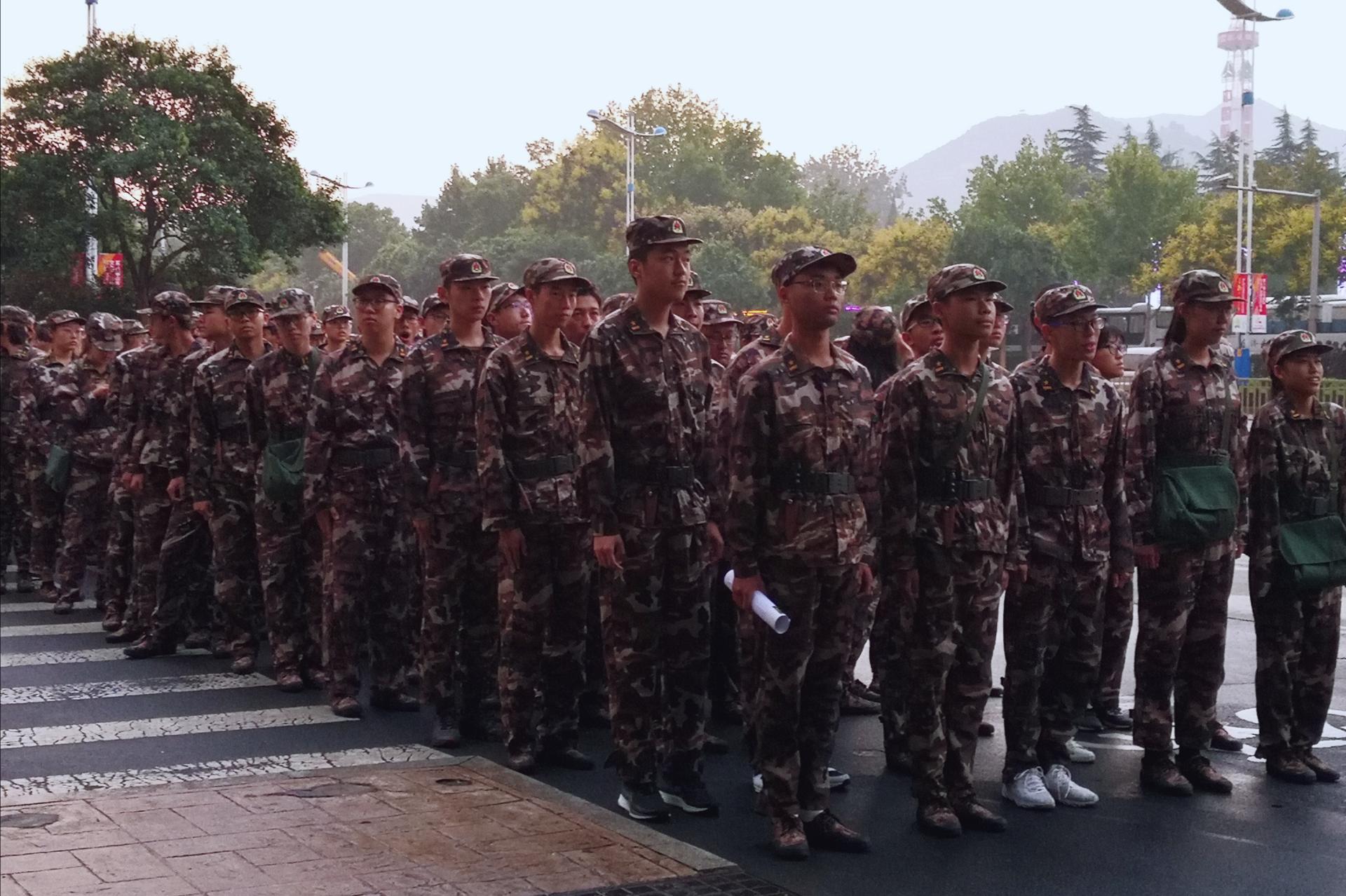 5:40,学员们于指定地点集合完毕,整装待发。本次活动以排为单位进行比拼,依据任务完成情况计入军训成绩。同学们需自主分辨方位,并按照既定路线完成泉城公园1.2公里徒步拉练活动。6:00,同学们迈着整齐的步伐从学校南门出发,向泉城公园行进。行军途中,无一人放弃,无一人掉队。行军拉练结束后,同学们回到校园,参照地图标注,找到校园内设的5个需到达的目的地。指导员于5处目的地分别等候前来打卡的各队伍,并予以盖章认可。集齐5个章后,同学们带着完成打卡任务的地图,回到训练场,整个拉练活动结束后,学员们没有叫苦叫累、怨天尤人,而是用整齐的队列和成功的喜悦迎接了教官的点评,并进行反思和总结。